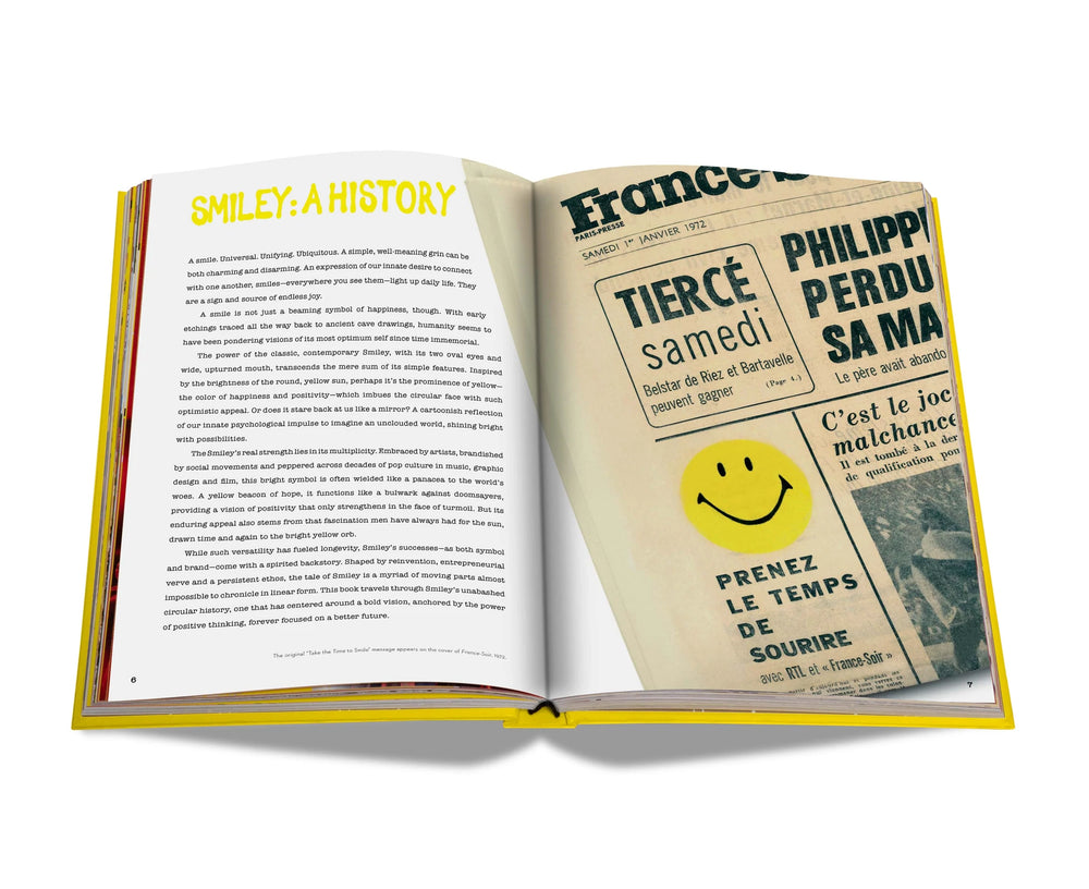 For the last fifty years, Smiley has served as a beacon of hope and positivity as they’ve encouraged the world to take the time to smile. What started as a happiness promotion in the France Soir newspaper to draw attention to positive news stories has blossomed into a movement that has shaped the way that we share happiness and express ourselves. In the decades since that first Smiley appeared on the page, the brand has gone on to shape musical generations, social movements, and popular culture. With a feel-good philosophy at their core, Smiley has partnered with some of the world’s leading brands to bring their message to life through clothing, gifts, campaigns, emoticons and other happy moments. In celebration of this joyful milestone, Smiley presents an exciting look back on their first 50 years with their new book, Smiley: 50 Years of Good News, featuring a compendium of their most exciting collaborations, a look back at moments in history that gave us a reason to smile, and more.