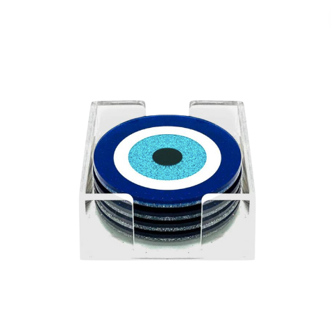 Elevate your table setting with our Acrylic Evil Eye Coasters, expertly blending style with functionality. These coasters not only protect your surfaces but also add a touch of elegance to any room.