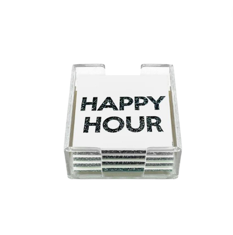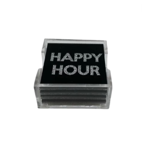 Elevate your table setting with our Acrylic Happy Hour Coasters, expertly blending style with functionality. These coasters not only protect your surfaces but also add a touch of elegance to any room.