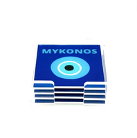 Elevate your table setting with our Blue acrylic coasters with evil eye design, expertly blending style with functionality. These coasters not only protect your surfaces but also add a touch of elegance to any room.