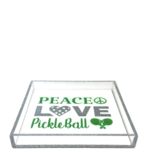 Elevate your home décor with our exquisite Acrylic Peace, Love, Pickle Ball Tray. Perfectly blending style and functionality.