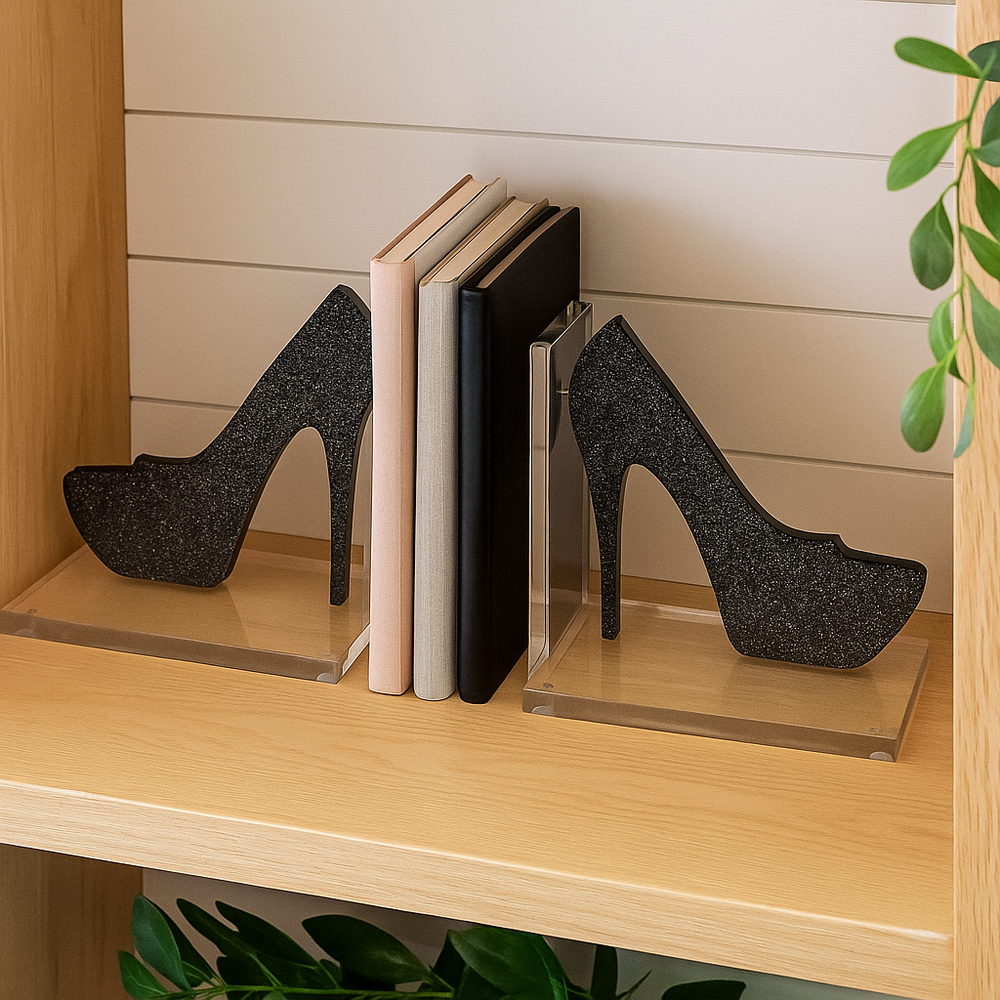 Add a glamorous touch to your bookshelf with the Acrylic Stiletto Bookends, perfect for keeping your favourite reads upright with style.