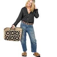 Hand woven, stitched and embroidered bag with wool and gold sequins. Handles made from handmade silk balls using “sfifa,” Moroccan trimmings. Hand carry bag.