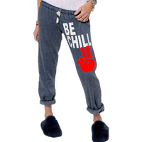 Super soft sweatpants with custom print and covered elastic waist and pull drawstring.