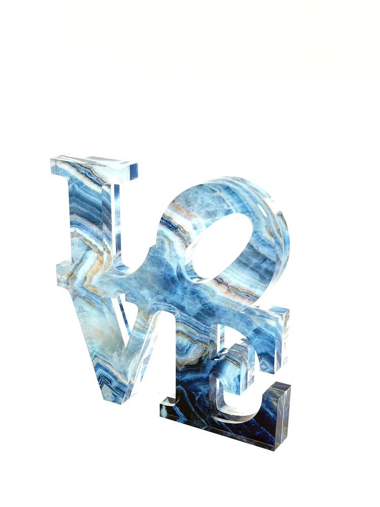 Add a bold pop of color and charm to any shelf or table with this freestanding acrylic LOVE sign. Featuring a stunning blue marble design, this thick decorative piece makes a statement on its own or as part of your shelf styling. Perfect for gifting or adding a touch of personality to your space.