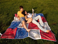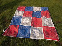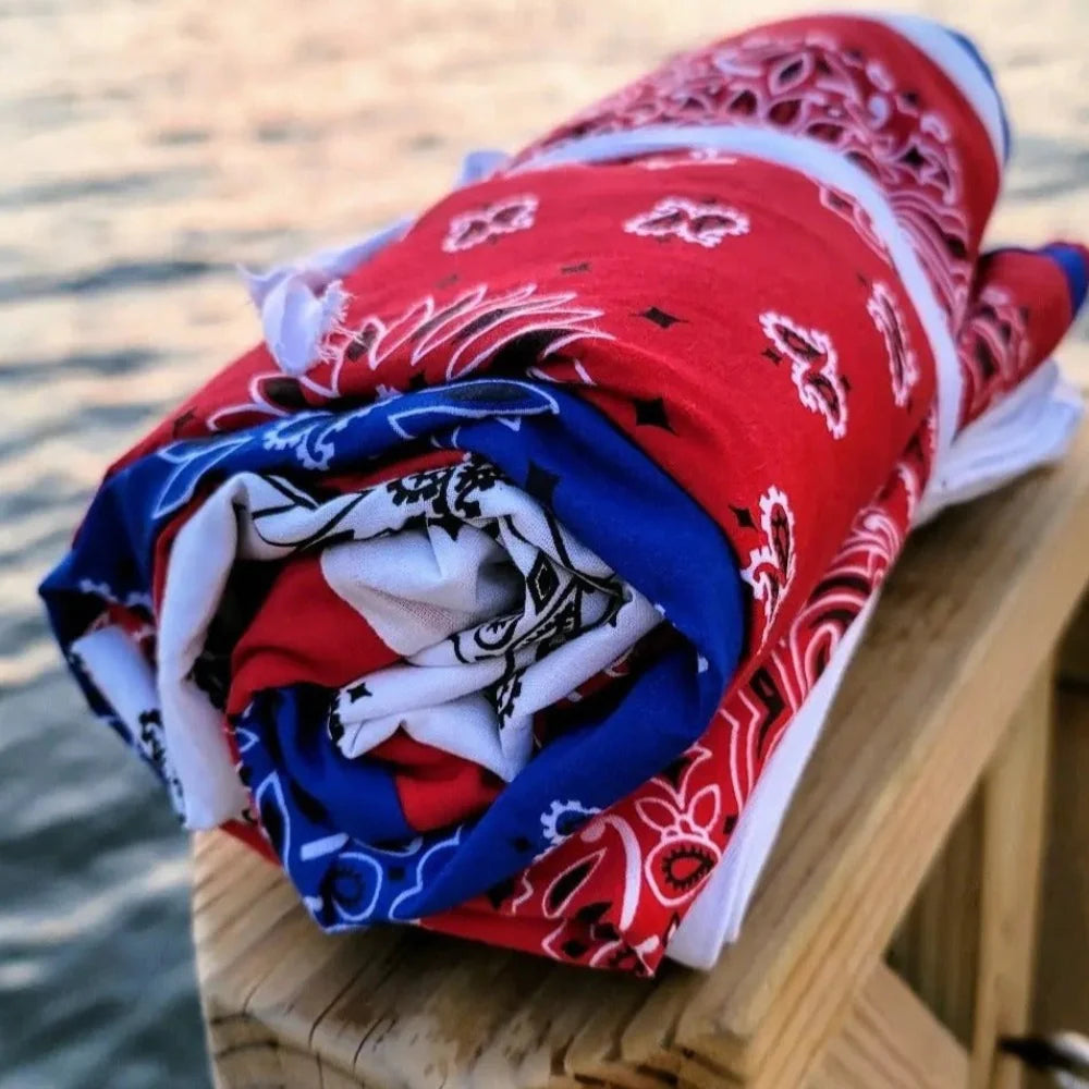 Embrace comfort and style with the RWB Bandana Blanket, masterfully crafted from 16 cotton bandanas. This unique patchwork design pairs a fashionable bandana top with an ultra-soft, natural cotton sheet underside, offering both beauty and unparalleled comfort.