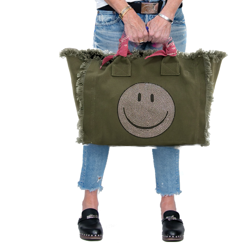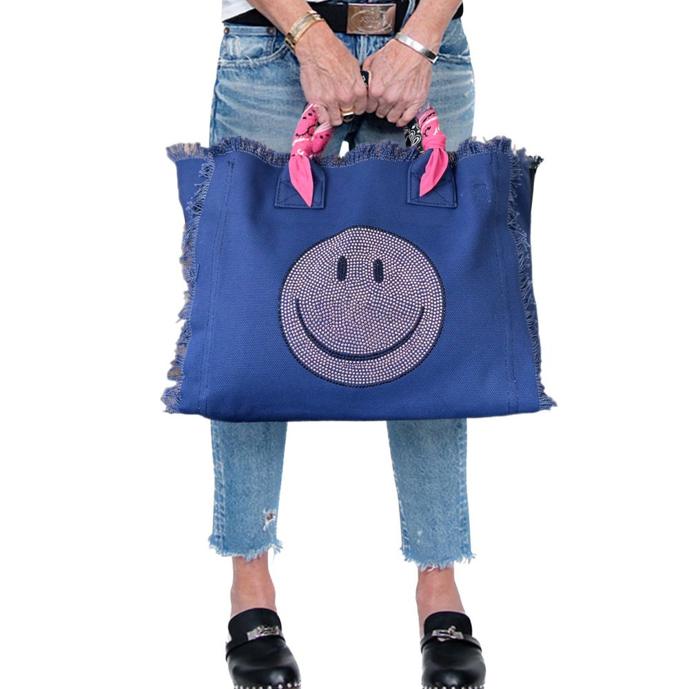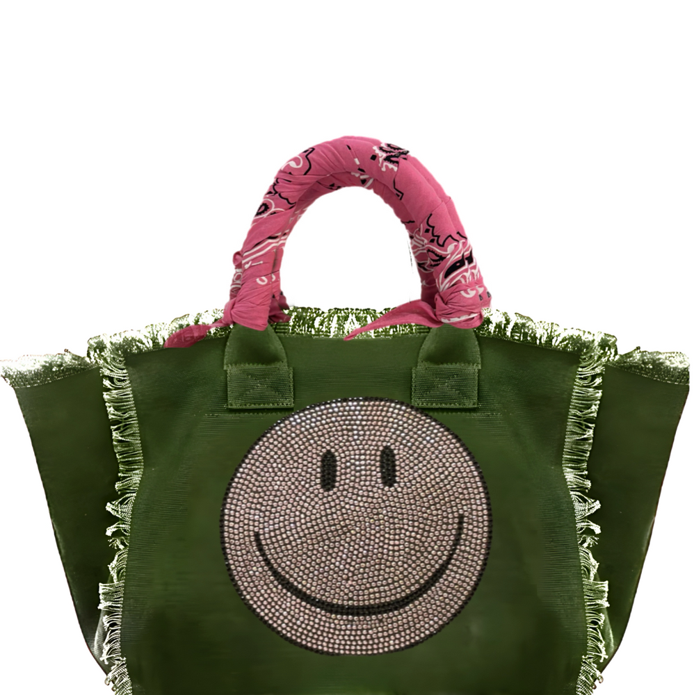 Smile Pink Crystal Fringe Canvas Bag