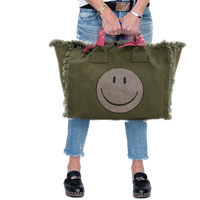 This stylish and functional 24 oz canvas tote is your perfect companion for any adventure. A smiley face will spread joy everywhere you go!