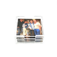 - Elegant Design: Sleek, transparent finish that complements any décor style. Set of 4 coasters with clear acrylic base.