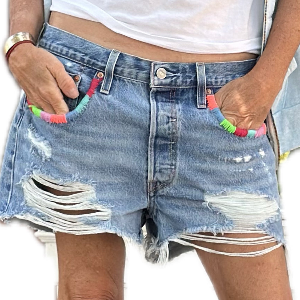 Denim Hand Embroidered Bright All Pocket Shorts Levi’s 501 SAMPLE SALE