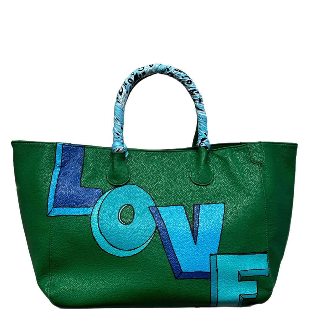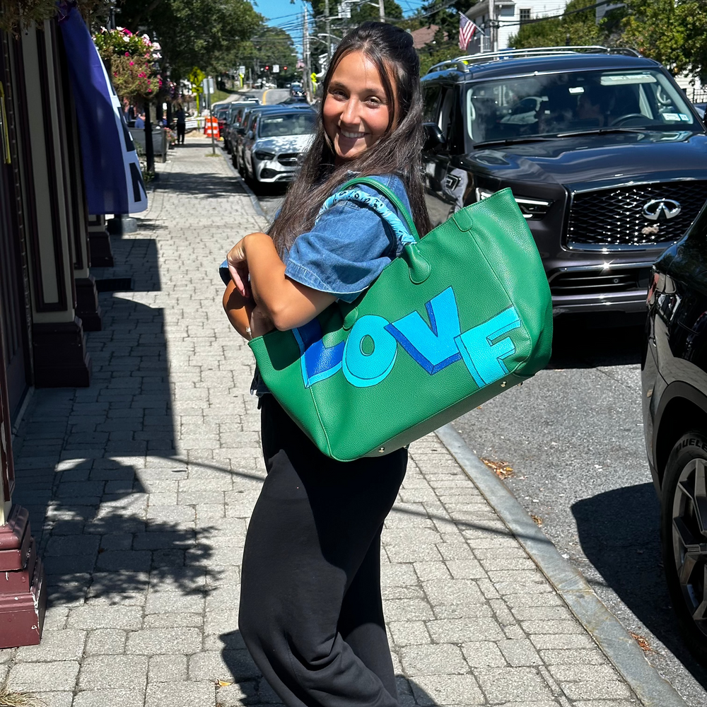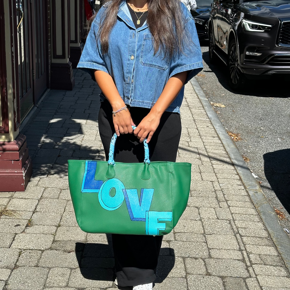 Everyday Vegan Leather Tote - Hand Painted LOVE