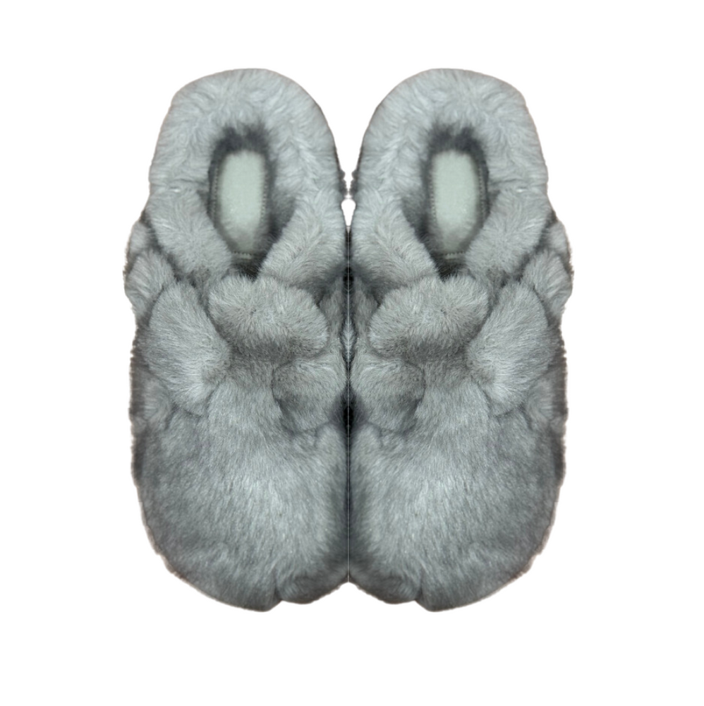Faux Fur Clogs - Grey is a versatile slip-on footwear option designed for both indoor and outdoor use. These fluffy, roomy shoes are recommended to be sized down for half sizes to ensure a snug fit.
