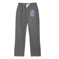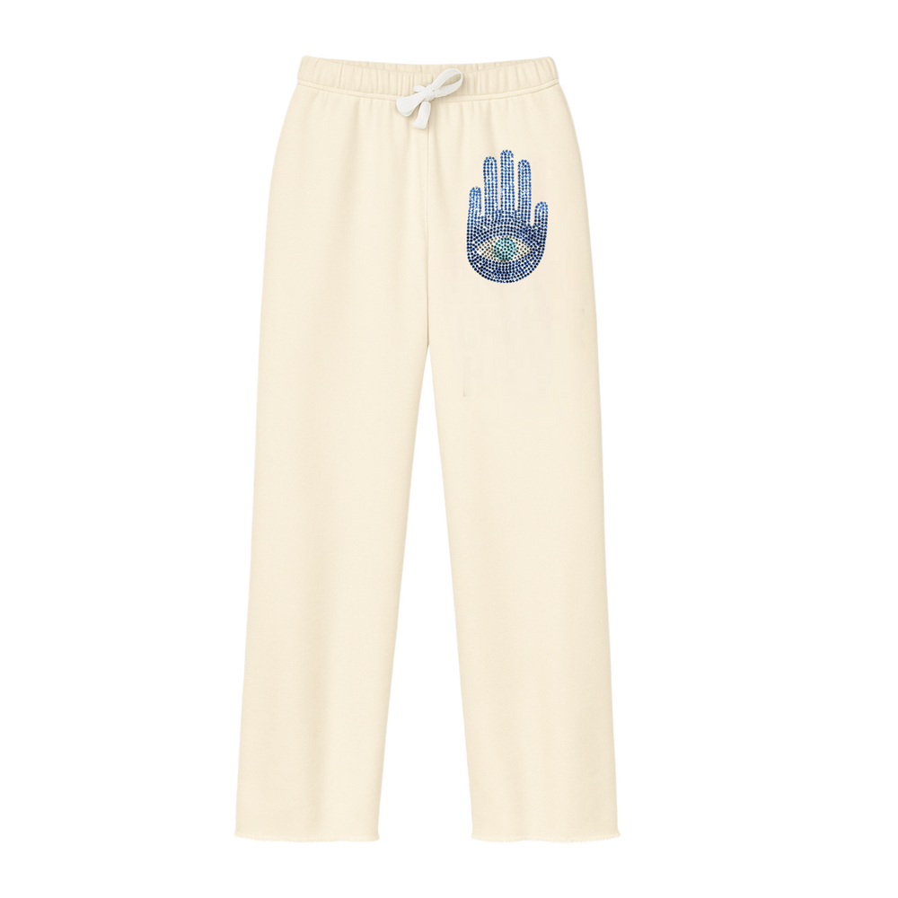 Super soft sweatpants with custom print and covered elastic waist and pull drawstring.
