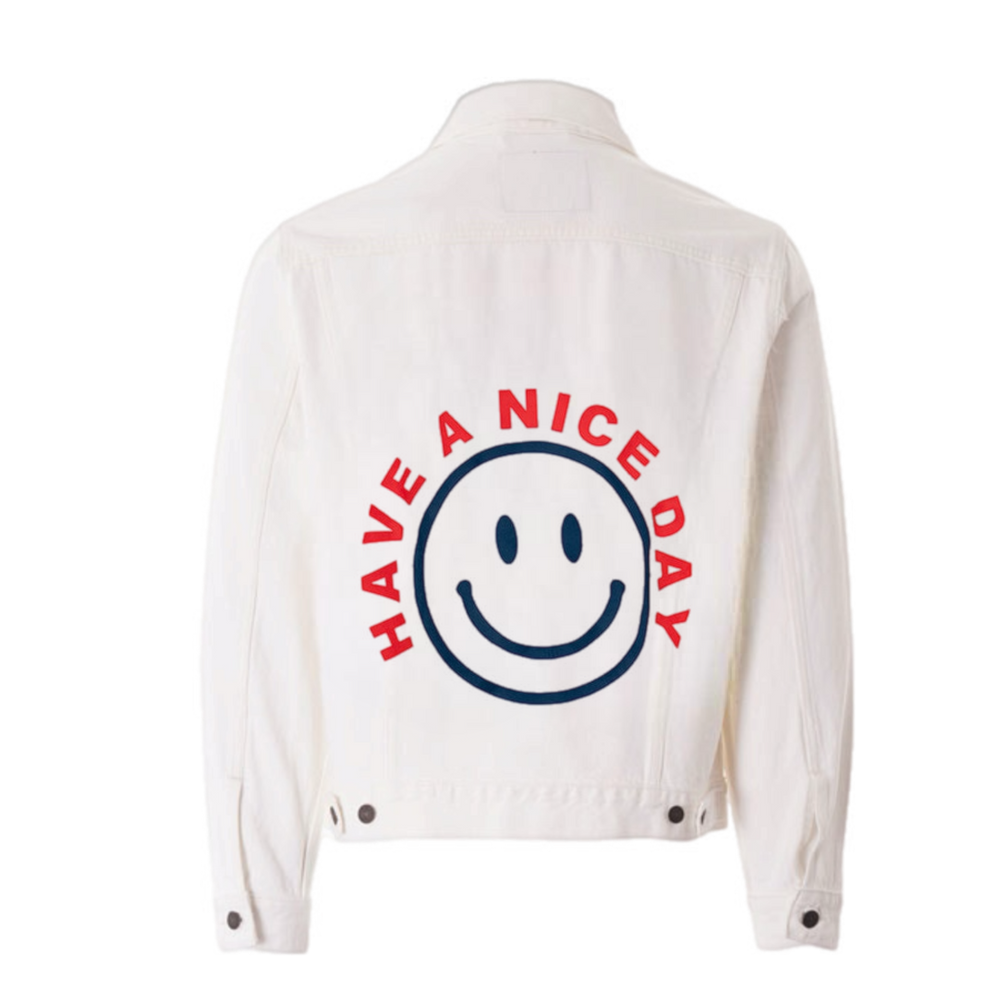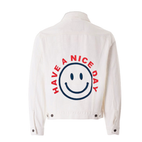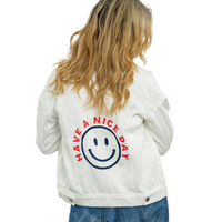Long Sleeve Crystal Skull , Jean Denim Jacket perfect for any occasion. Crystal skull with white, silver and black stripes, down the middle of the back. In addition to the front flap pockets, there is single button fastening in the front and a back vent in the hem.
