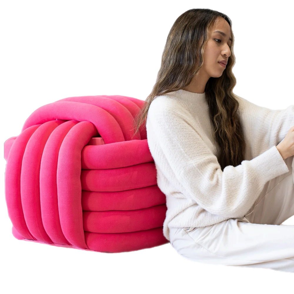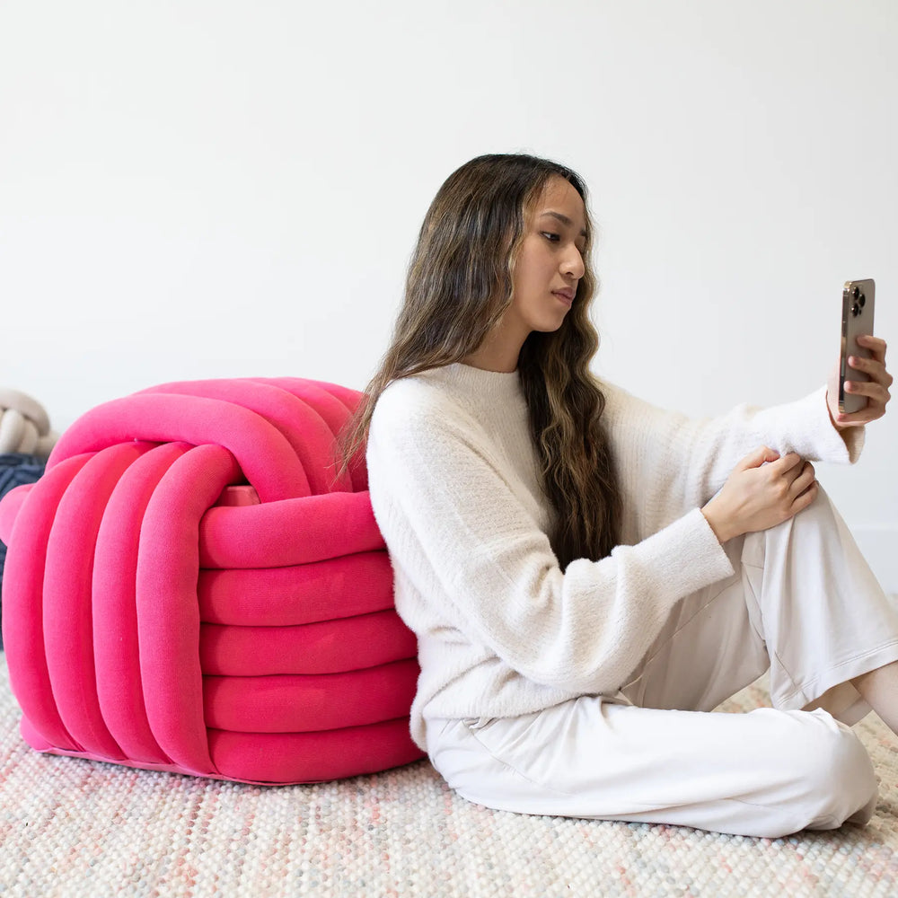 Loopy and playful, our knotted pouf ottomans are a definite conversation starter. Soft yet extremely sturdy, these unique pieces will add a pop of modern design to any decor. Get more than one to add some fun to your living room, kids' room, or any spot that could use some distinctive seating or fun footrests.
