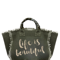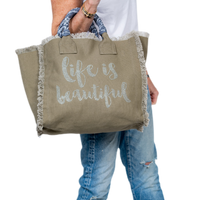 Life Is Beautiful Fringe Canvas Bag