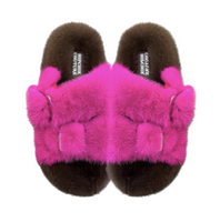 Luxe Mink Slide Sandals - Brown Fuschia are your go-to for unparalleled comfort and sophistication. With their open-toe design and real mink fur, these sandals offer luxurious softness, making them perfect for both dressing up and casual wear. Experience the celebrity-like style and indulge in effortless everyday elegance with these exquisite slides.
