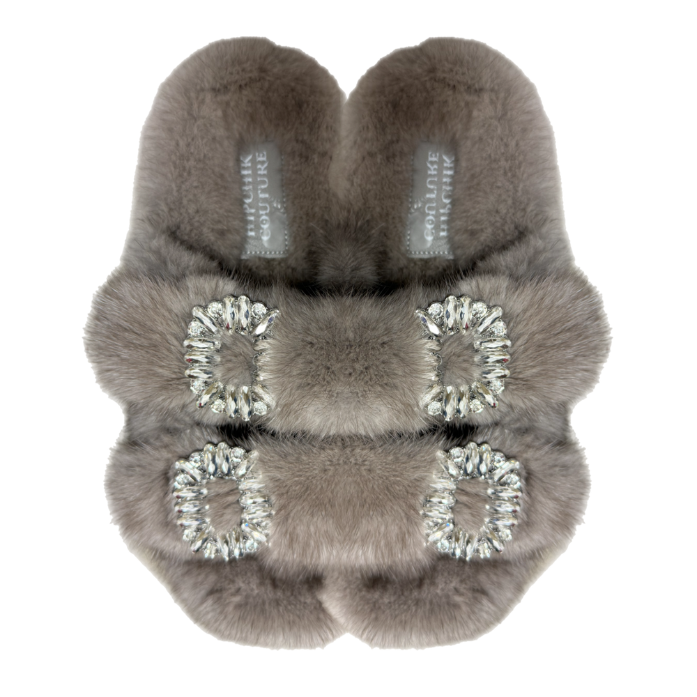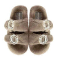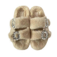 The Luxe Mink Slide Sandals with Crystal Buckle - Basics are a fusion of luxury and comfort, featuring soft mink fur and a dazzling crystal buckle. These open-toe sandals are versatile, perfect for elevating any outfit with a touch of celebrity-inspired sophistication. Designed for those who value both style and comfort, these sandals promise a luxurious experience with every step.
