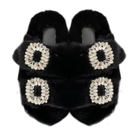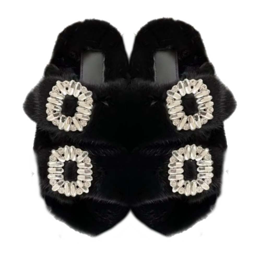 Mink Slide Sandals Shoes with Crystal Buckle Black
