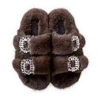 The Luxe Mink Slide Sandals with Crystal Buckle - Basics are a fusion of luxury and comfort, featuring soft mink fur and a dazzling crystal buckle. These open-toe sandals are versatile, perfect for elevating any outfit with a touch of celebrity-inspired sophistication. Designed for those who value both style and comfort, these sandals promise a luxurious experience with every step.