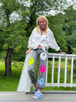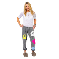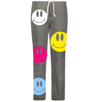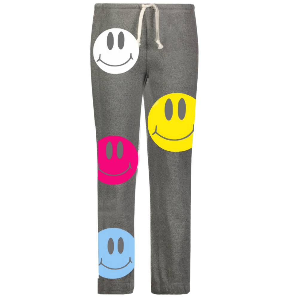 Super soft sweatpants with custom print and covered elastic waist and pull drawstring.