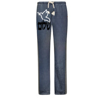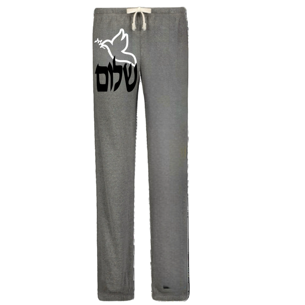 Super soft sweatpants with custom print and covered elastic waist and pull drawstring.