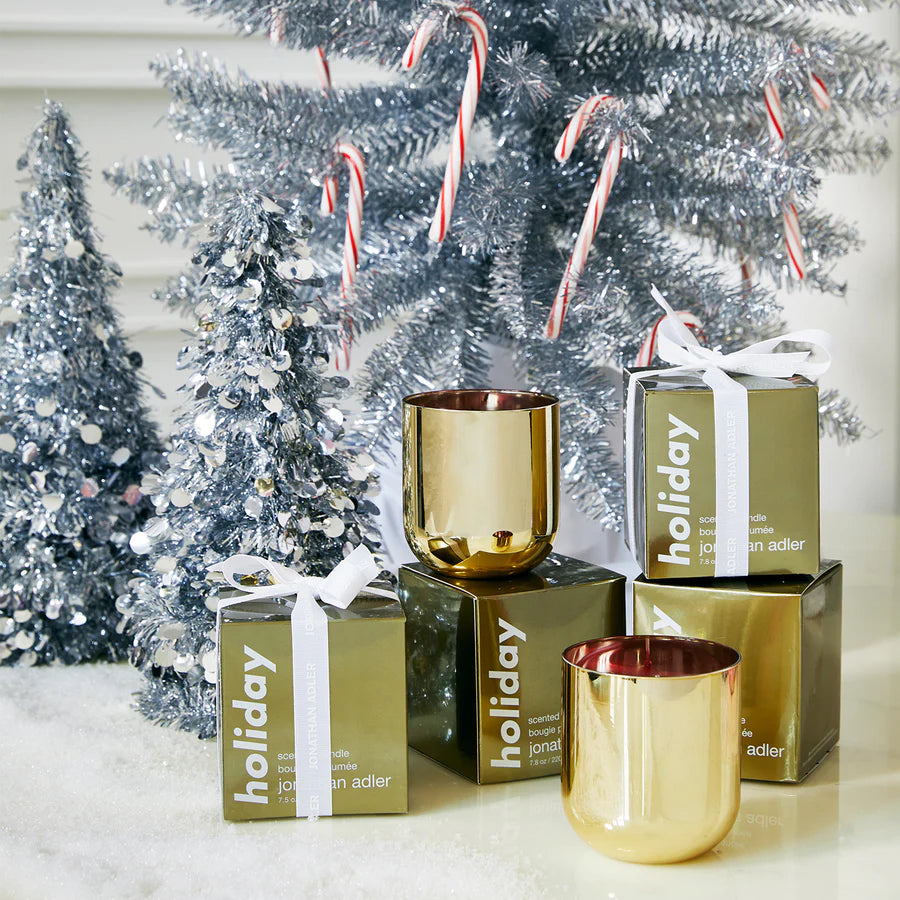 Whenever the merry mood strikes, light up our spirited scent, housed in a reusable golden vessel (perfect as a petite vase post-season!).