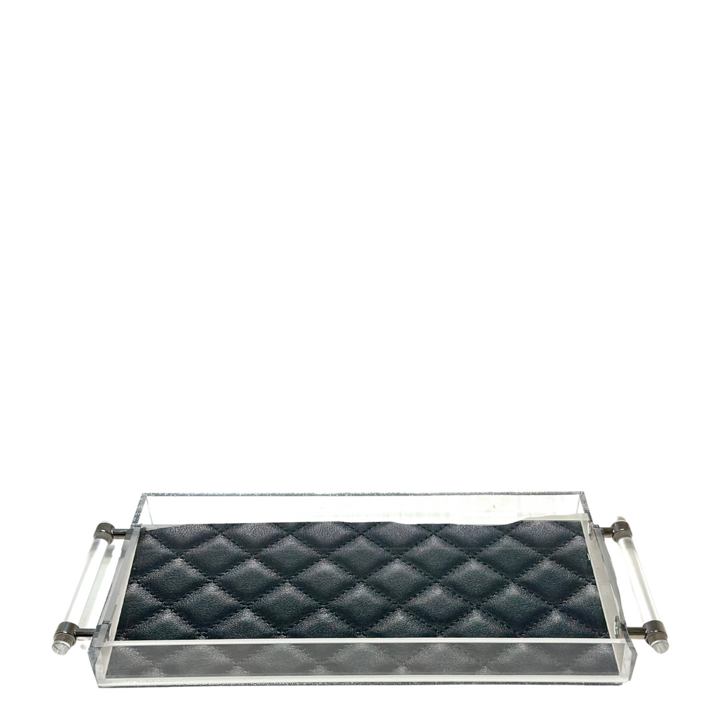 Uniquely designed Quilted Black Print Acrylic Tray with Handles.