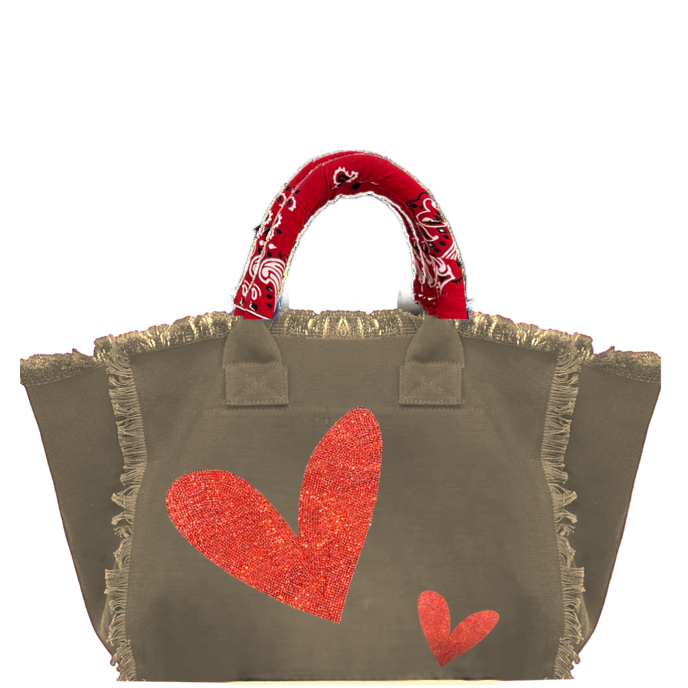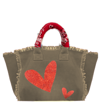 Red Crystal Heart Fringe Canvas Bag SAMPLE SALE