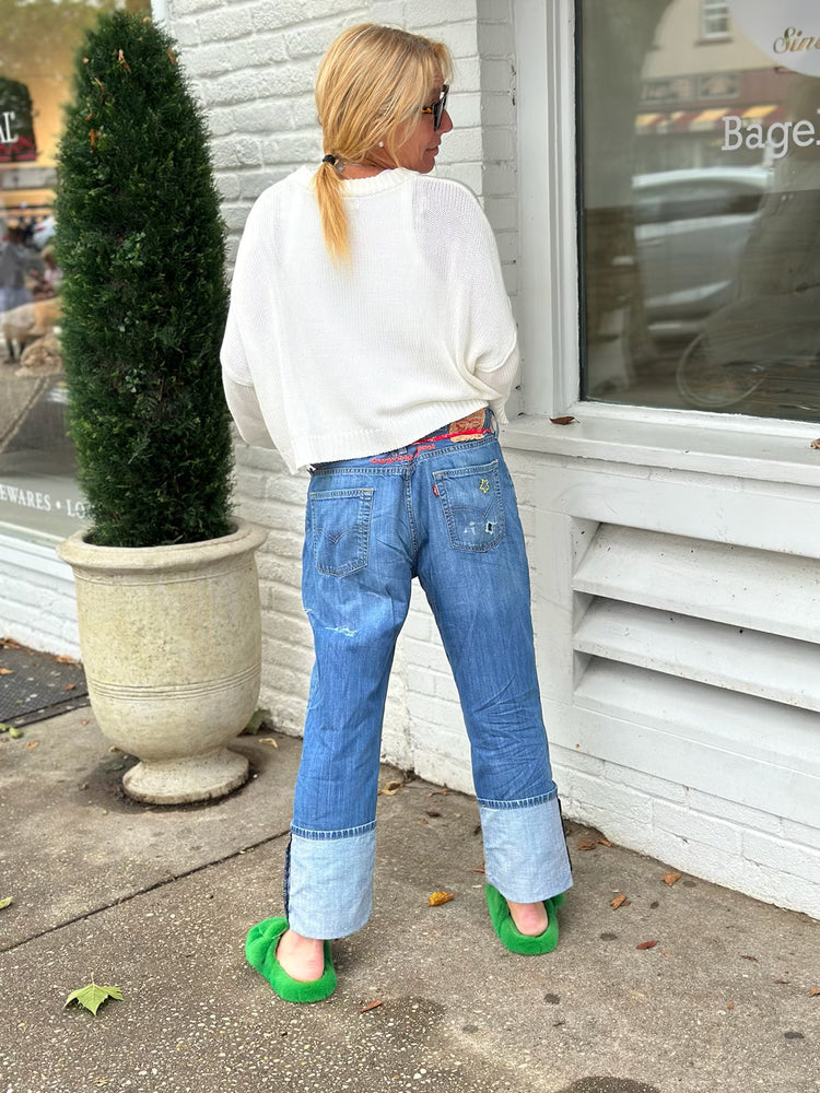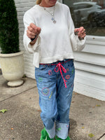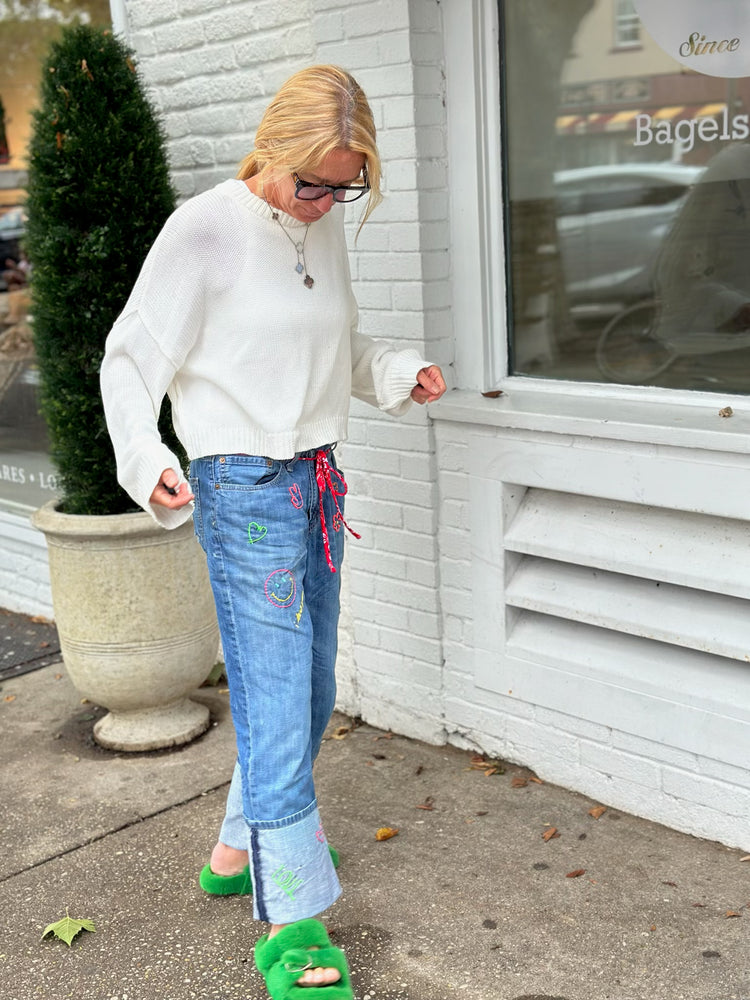 Perfect for adding a touch of playful charm to your casual wardrobe, these jeans combine comfort and unique style effortlessly.