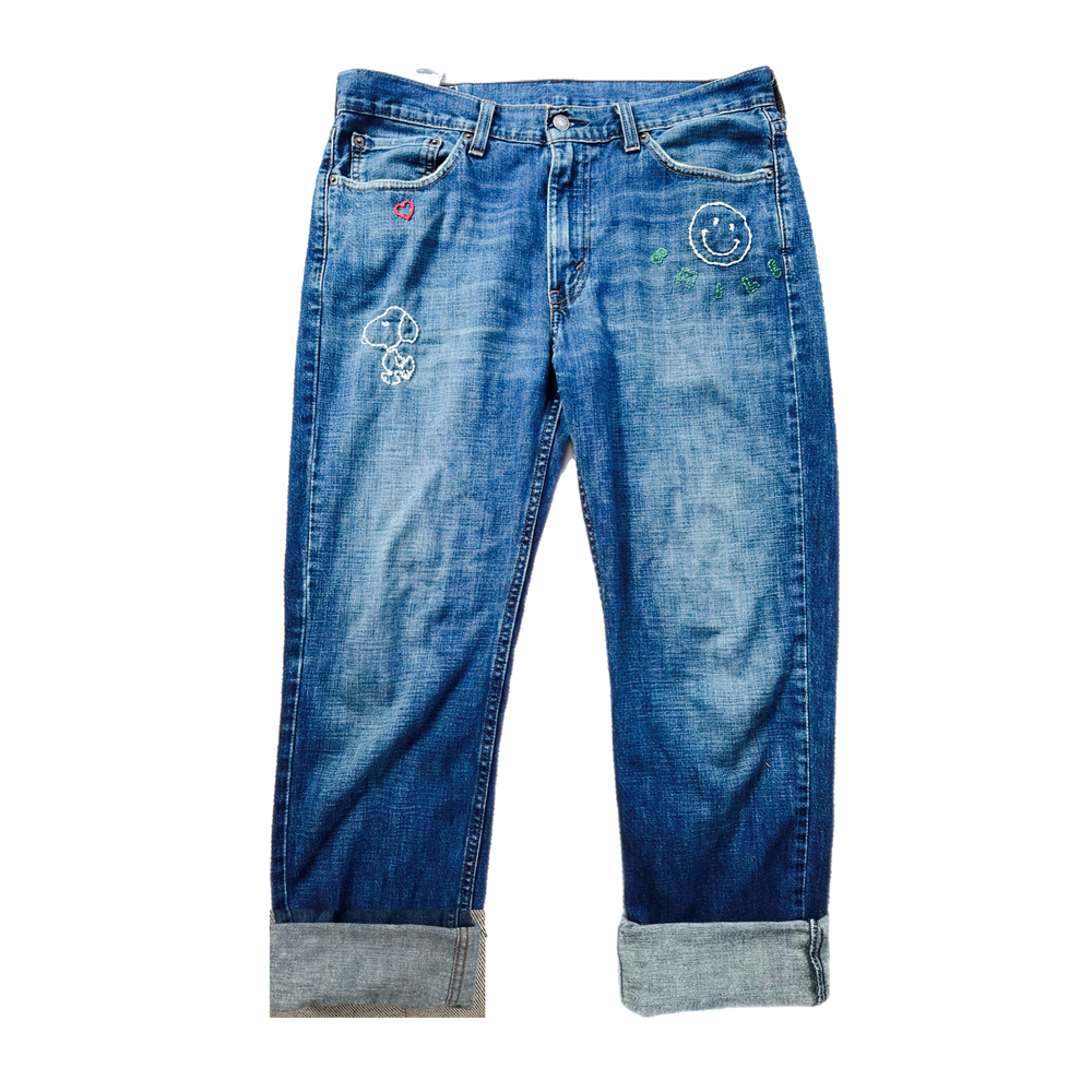 Refurbished Embroidered Vintage Snoopy Denim Levi's Jeans