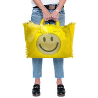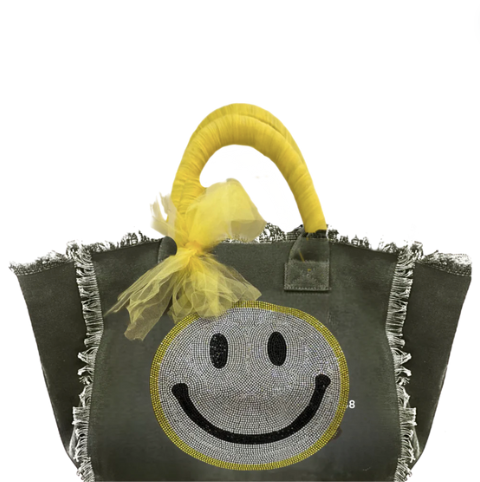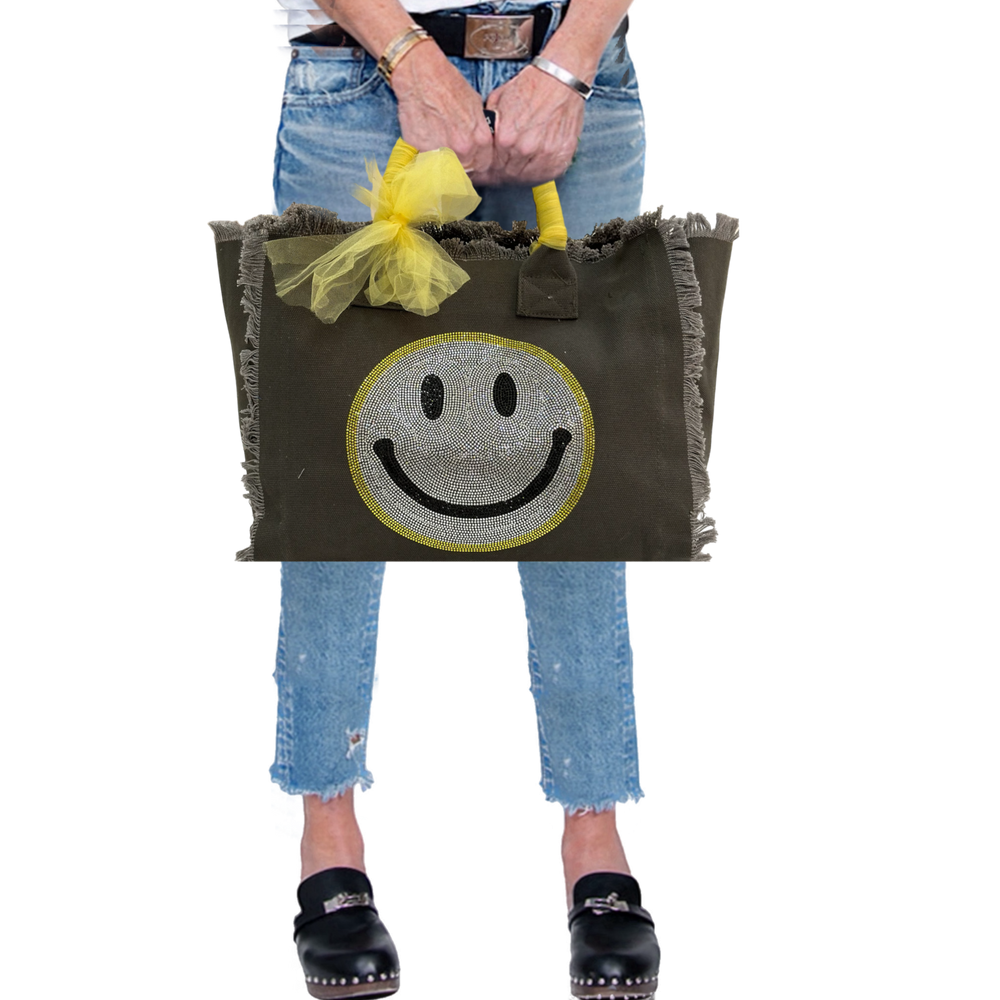 Smile Silver Gold Crystal Fringe Canvas Bag