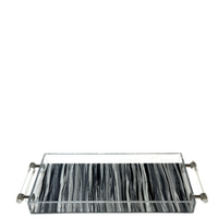 Black, white and silver striped acrylic tray with Handles. Perfect for entertaining.