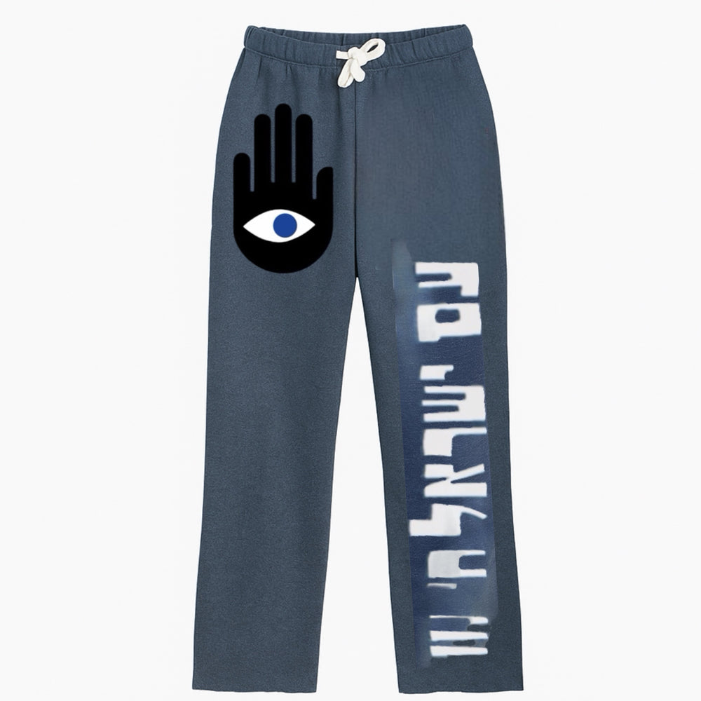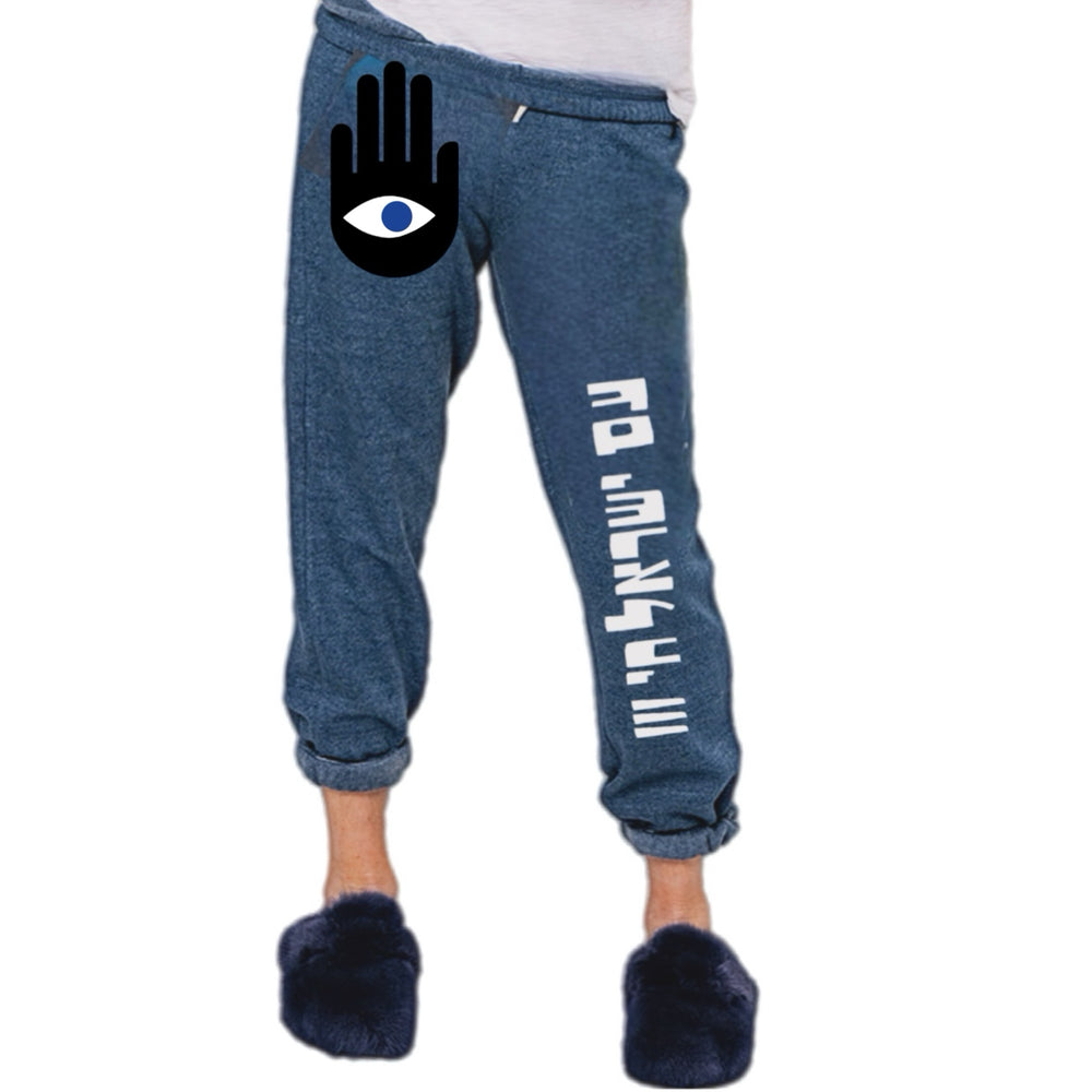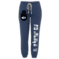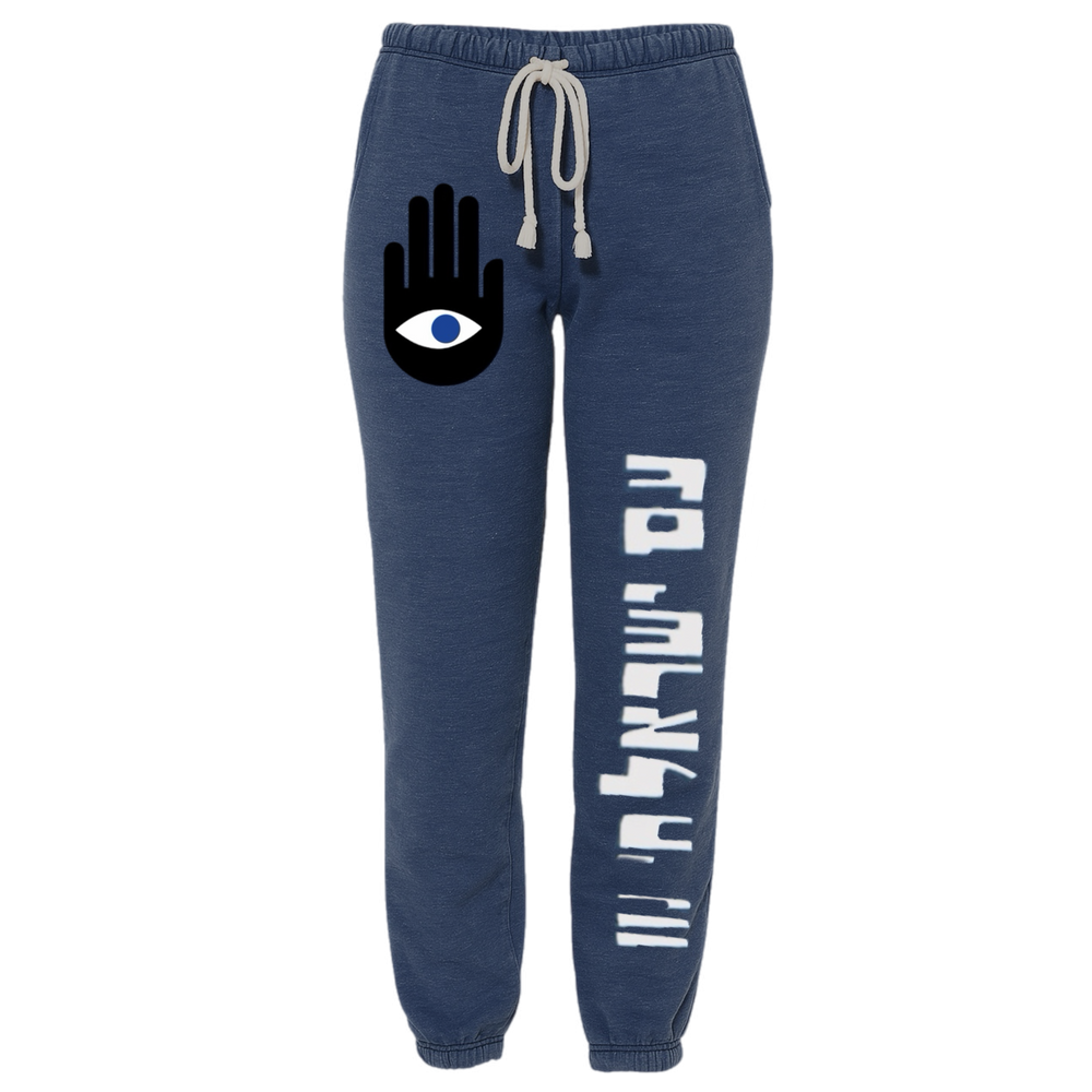 Super soft sweatpants with custom print and covered elastic waist and pull drawstring.