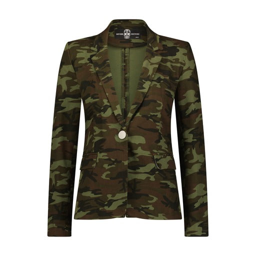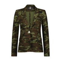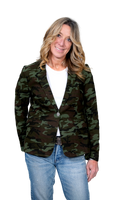 Introducing our Round Tiger Camouflage Blazer, a versatile addition to your wardrobe. This long sleeve blazer boasts a striking tiger camouflage pattern, adding a bold edge to any outfit. With its stretch fabric, front pockets, single button fastening, and back vent, it's both stylish and functional. Elevate your look with this statement piece from Hipchik Couture.