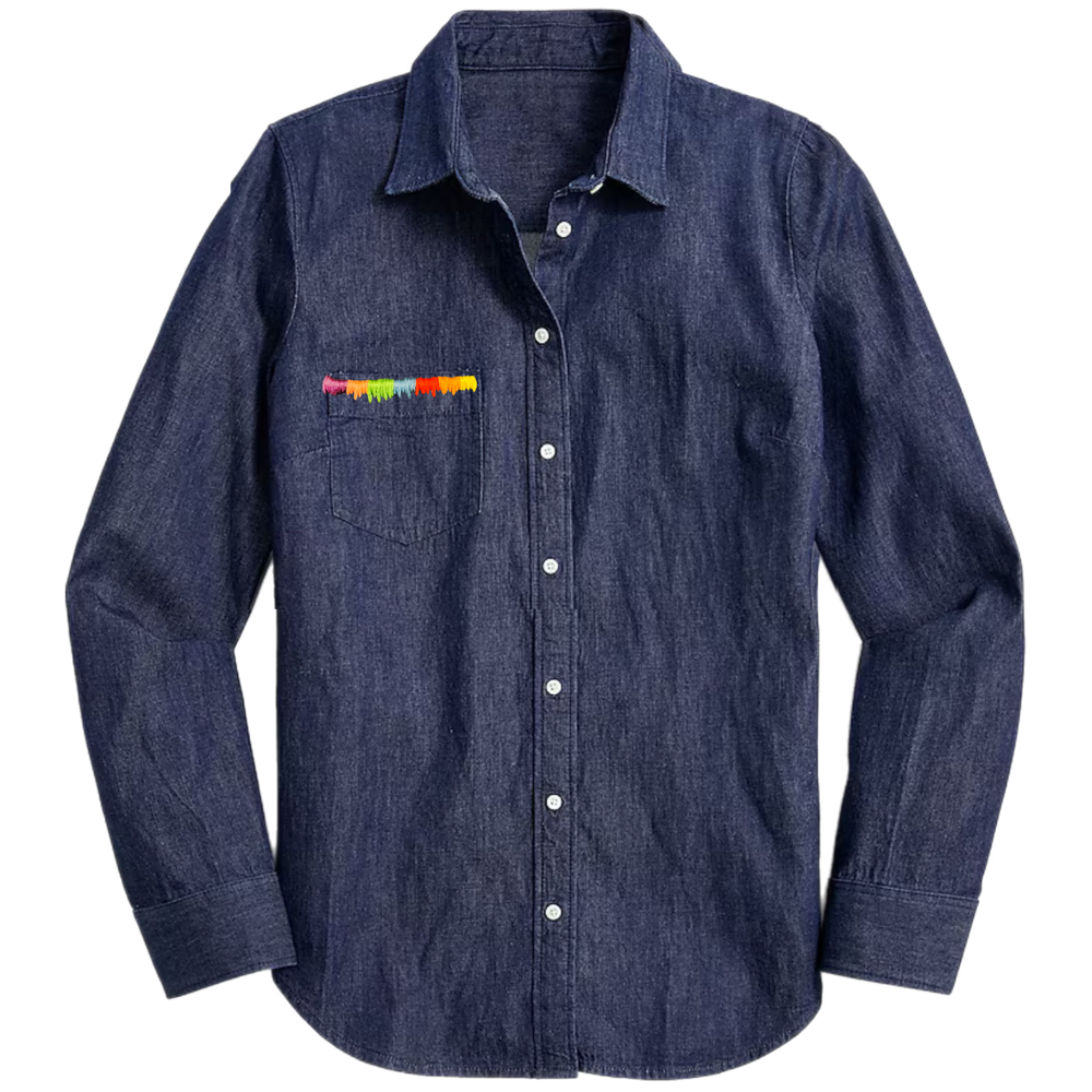 This beautifully crafted denim shirt combines comfort and artistry, making it a perfect addition to your wardrobe. Featuring delicate hand embroidery and premium materials, it is both stylish and versatile for any occasion.