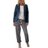 Super soft sweatpants with custom print and covered elastic waist and pull drawstring.