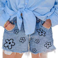 Denim Hand Embroidered Daisies Shorts - Levi’s 501