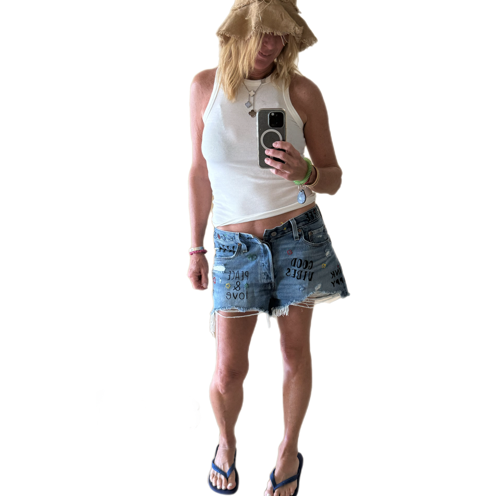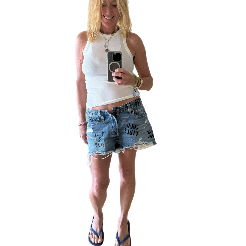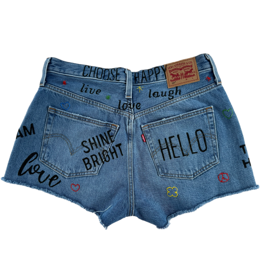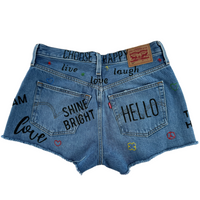 Denim Hand Painted Embroidered Happy Shorts - Levi’s 501