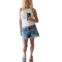 Discover our Denim Hand Embroidered Shorts, perfect for adding a unique touch to your summer wardrobe.