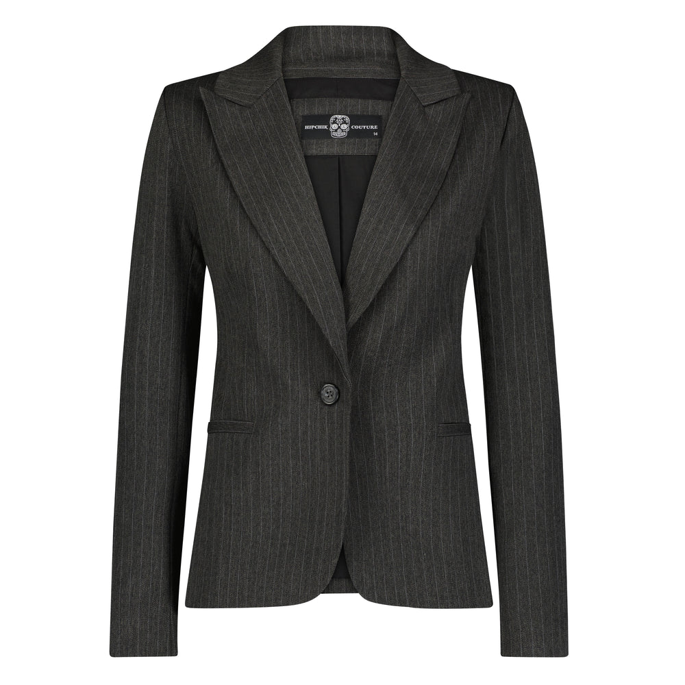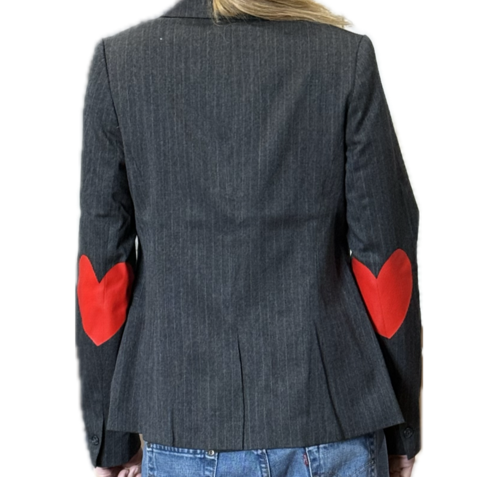 Hearts On Elbow Pinstripe Blazer - Charcoal