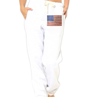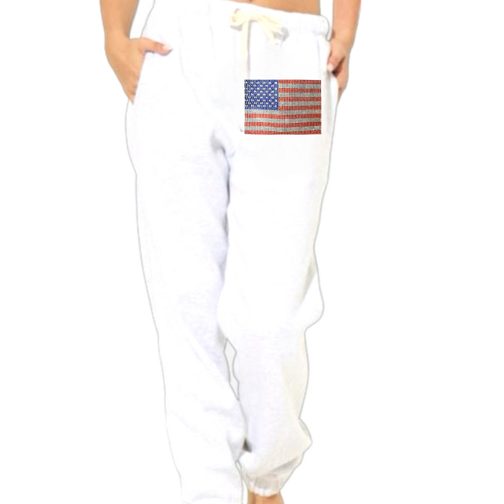 Super soft sweatpants with custom print and covered elastic waist and pull drawstring.