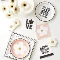 Impress your guests with these eye-catching floral napkins that add a touch of fun to any occasion. •Features iconic love design with cute scallop edging •Comes with 20 napkins per pack •Great for all occassions from groovy birthday parties to spring picnics! • Material: Paper • Size: 5" SQ