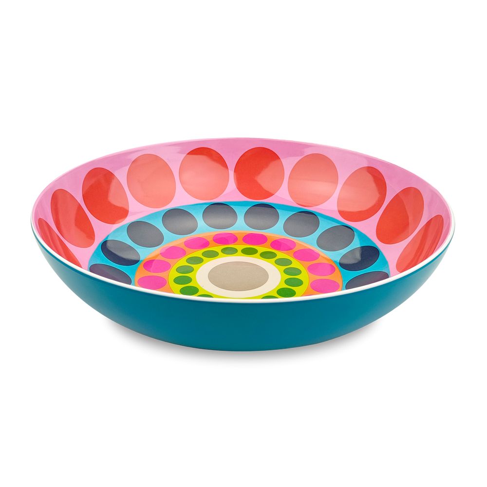 Our beautifully shaped bowl is low and wide. Its generous size is perfect for serving salads for 4 to 6 people or to serve fruit, chips or to use as a centerpiece. Add matching salad servers or a coordinating round platter to complete the look.