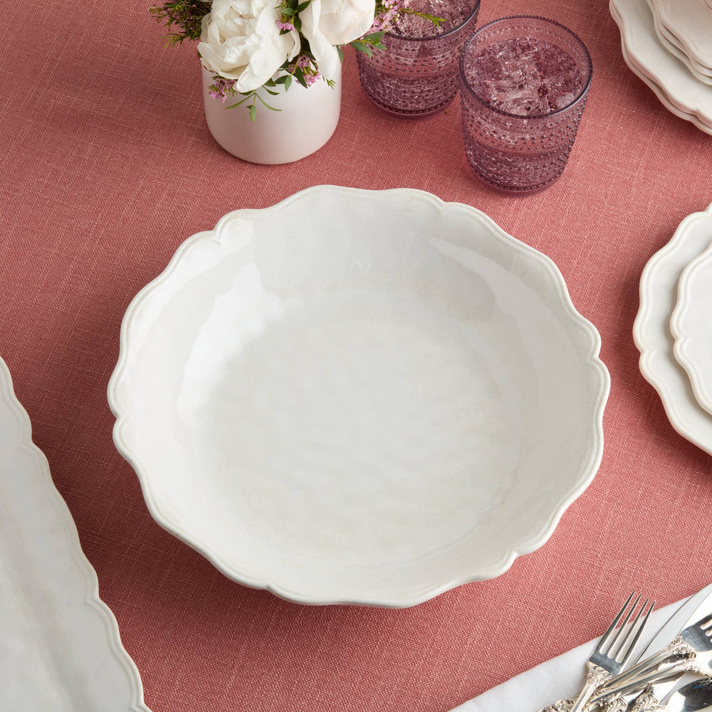 Make a statement at your table with the Isabella Cream Large Serving Bowl, a 13.75-inch piece with a generous 116 oz capacity. Perfect for serving salads, pasta, or side dishes, this bowl combines functionality with rustic elegance. The soft cream color, subtle crackle finish, and scalloped edges add a vintage charm to your dining experience. Ideal for both everyday meals and festive gatherings, its durable construction ensures it stands up to frequent use. Dishwasher-safe for easy cleanup, this bowl offers practicality without compromising on style. Pair it with other Isabella Cream pieces for a cohesive table setting or mix and match with vibrant designs for a personalized touch.