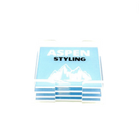 Elevate your table setting with our Light blue acrylic coasters with white and black lettering, expertly blending style with functionality. These coasters not only protect your surfaces but also add a touch of elegance to any room.