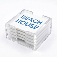 - Elegant Design: Sleek, transparent finish that complements any décor style. Set of 4 coasters with clear acrylic base.