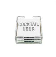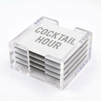 - Elegant Design: Sleek, transparent finish that complements any décor style. Set of 4 coasters with clear acrylic base.