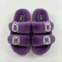 Mink Slide Sandals Shoes with Crystal Buckle Purple