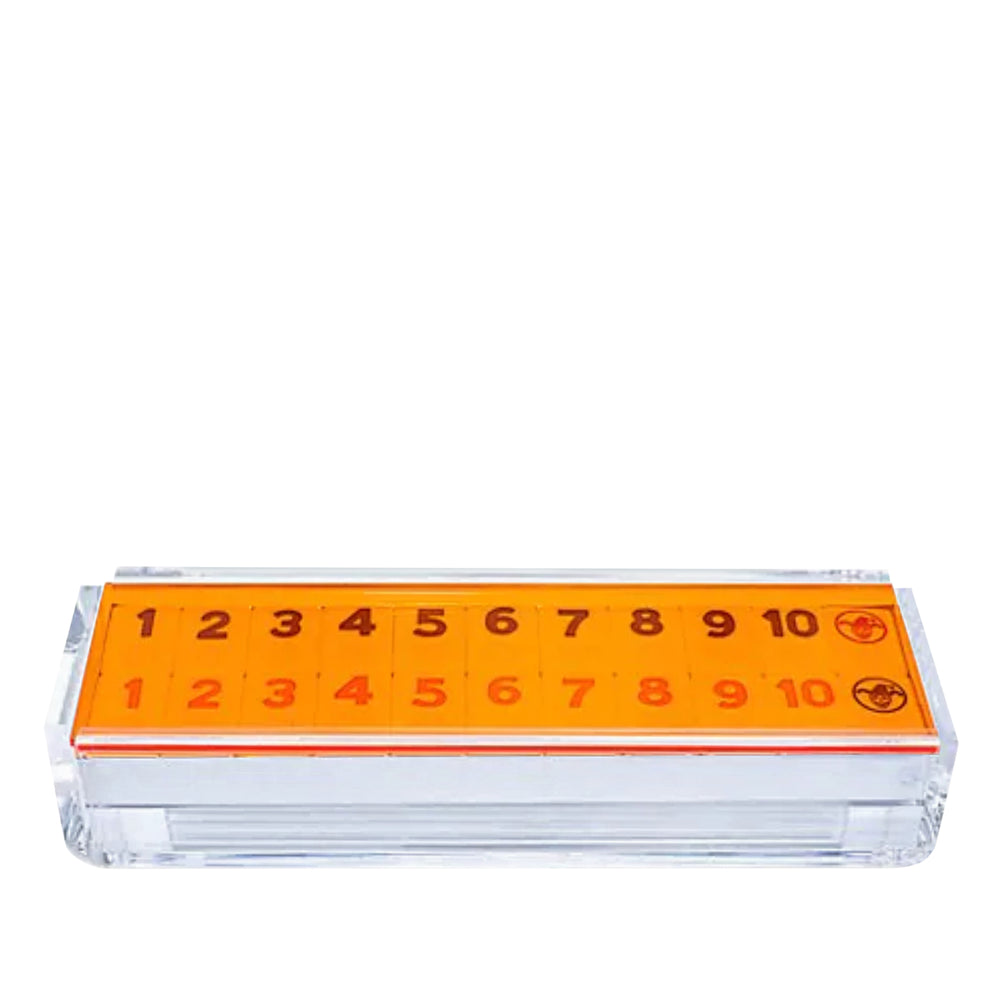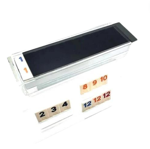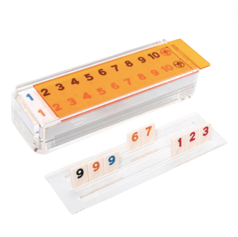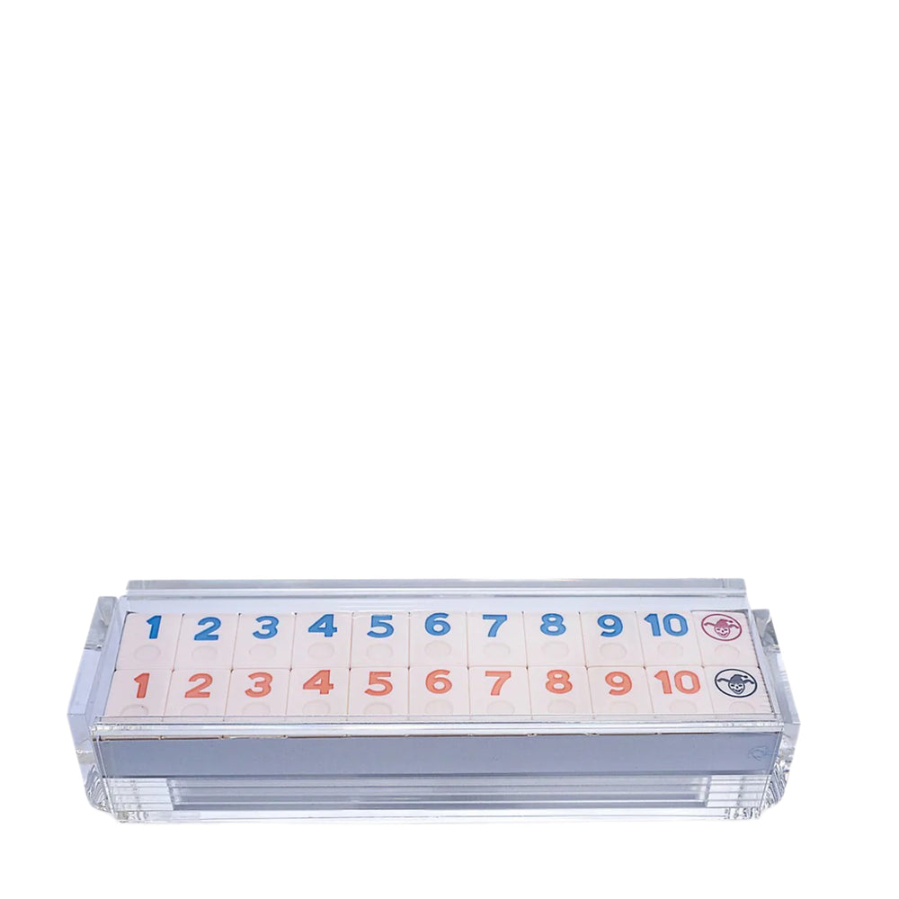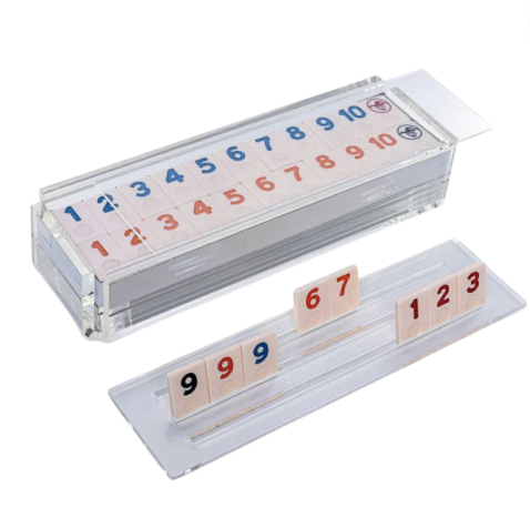 The "Deluxe Acrylic Rummikub Game -  is a stylish version of the classic tile-based game Rummikub, featuring a modern acrylic design with butterfly motifs. Ideal as a unique gift, this game set includes everything needed for hours of enjoyment.